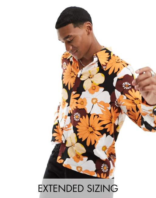 ASOS DESIGN - Chemise à fleurs décontractée avec col style années 70 - Orange/marron