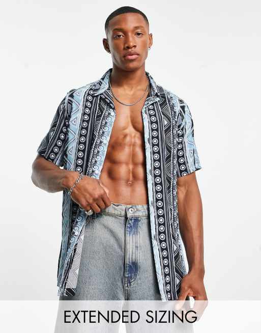 ASOS DESIGN - Chemise à revers avec rayures aztèques - Bleu et noir