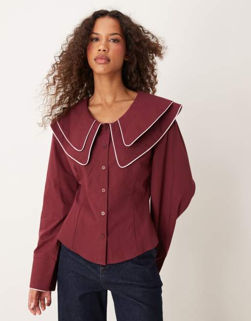 ASOS DESIGN - Chemise ajustée avec col double en popeline - Bordeaux