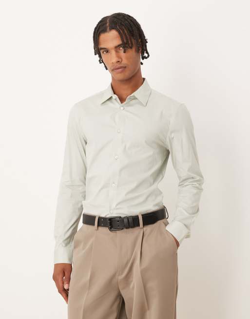 ASOS DESIGN - Chemise ajustée en popeline - Vert sauge