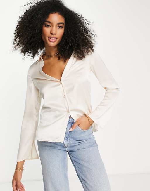 ASOS DESIGN - Chemise ajustée en satin - Ivoire
