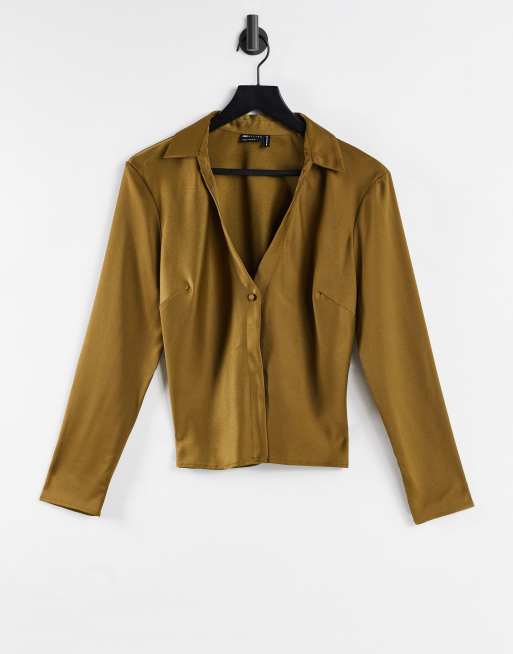 ASOS DESIGN - Chemise ajustée en satin - Olive