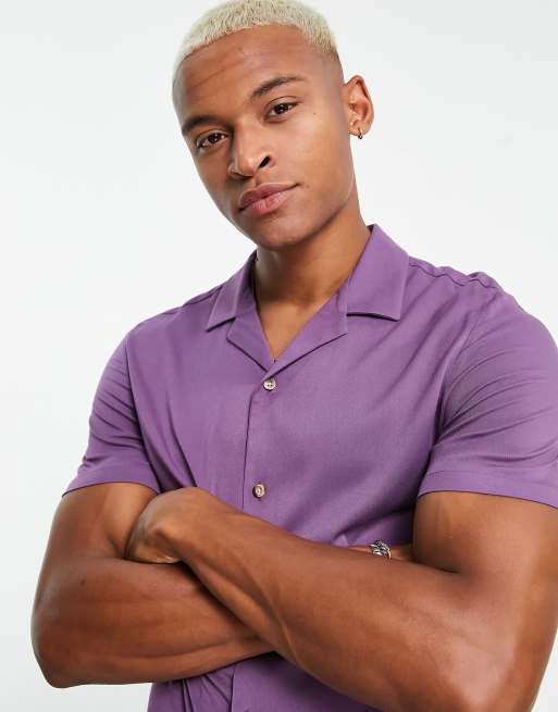 ASOS DESIGN - Chemise ajustée en viscose avec col à revers - Raisin