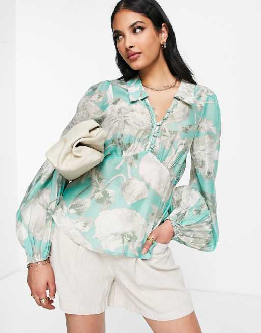 ASOS DESIGN - Chemise boutonnée à imprimé fleuri avec dos ouvert et décolleté plongeant - Vert sauge
