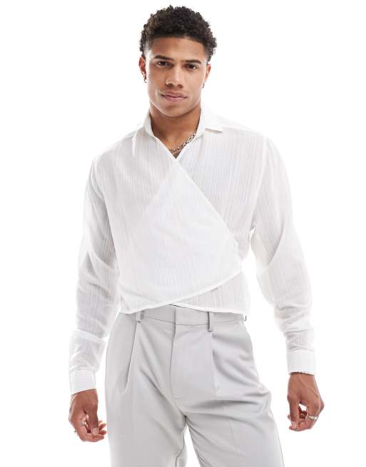 ASOS DESIGN - Chemise cache-cœur décontractée à rayures - Blanc transparent