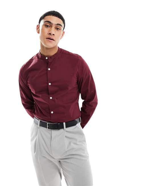 ASOS DESIGN - Chemise classique avec col grand-père - Bordeaux