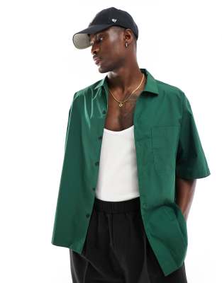 ASOS DESIGN - Chemise coupe carrée oversize à manches courtes en popeline - Vert foncé
