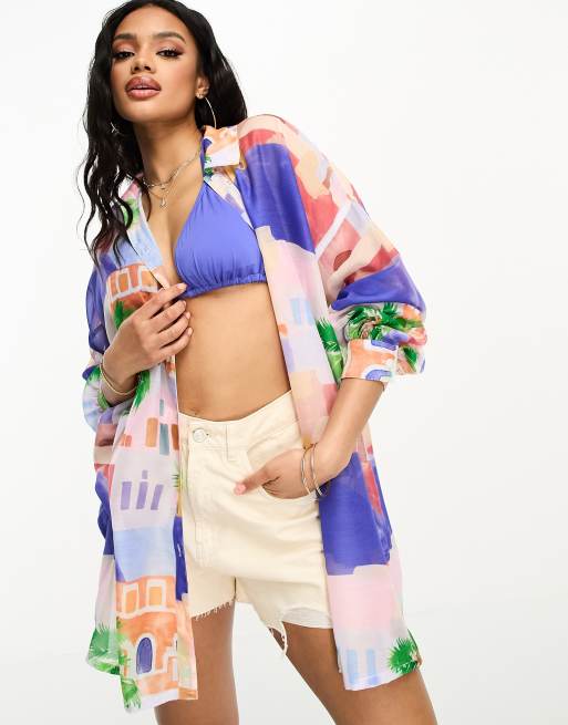ASOS DESIGN - Chemise de plage à imprimé Mykonos