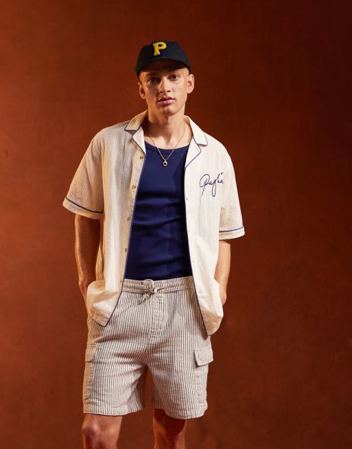 ASOS DESIGN - Chemise décontractée à col cranté et broderie sur la poitrine en jacquard rayé
