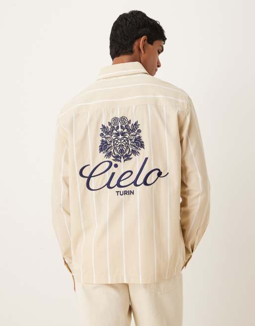 ASOS DESIGN - Chemise décontractée à rayures et broderie - Sable