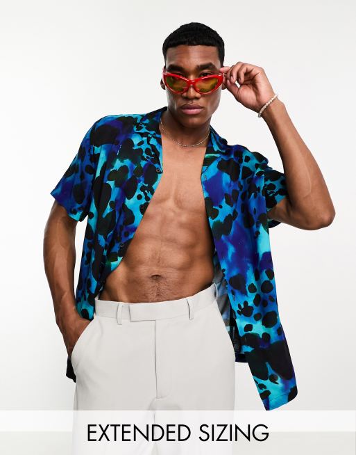 ASOS DESIGN - Chemise décontractée à revers avec imprimé léopard - Bleu