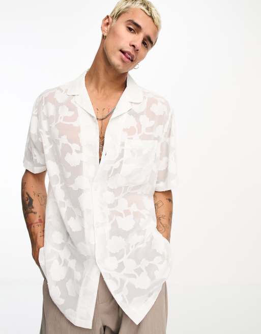 ASOS DESIGN - Chemise décontractée à revers en jacquard fleuri transparent - Blanc
