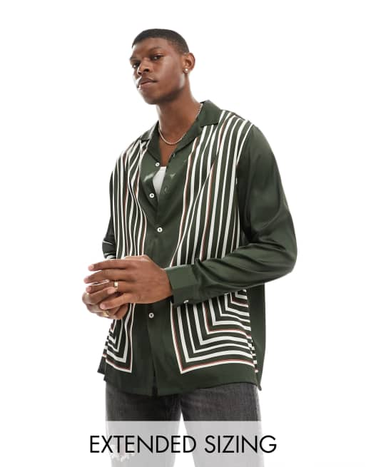 ASOS DESIGN - Chemise décontractée avec col à revers à rayures - Vert foncé