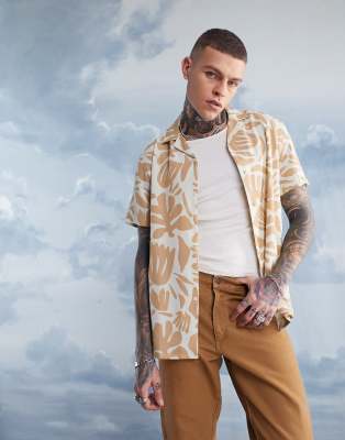 ASOS DESIGN - Chemise décontractée avec col à revers et imprimé fleuri abstrait - Beige