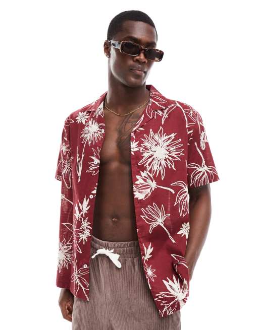 ASOS DESIGN - Chemise décontractée avec col à revers et imprimé fleuri - Rouge