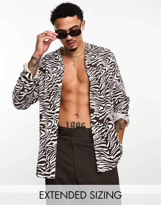 ASOS DESIGN - Chemise décontractée avec col à revers et imprimé zébrures - Marron