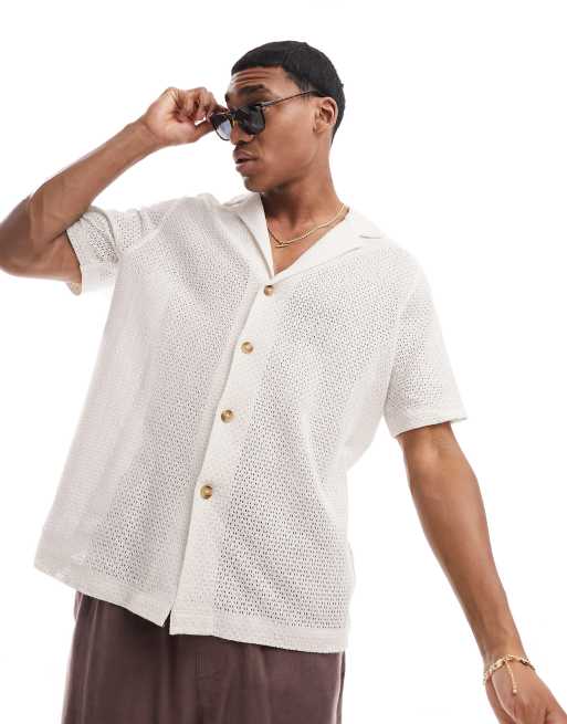 ASOS DESIGN - Chemise décontractée en coton texturé tressé avec col à revers larges - Écru