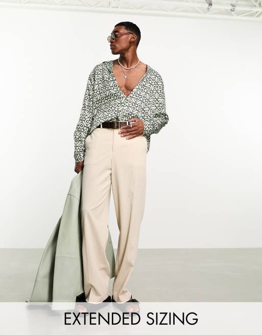 ASOS DESIGN - Chemise décontractée en satin avec large col à revers et imprimé géométrique