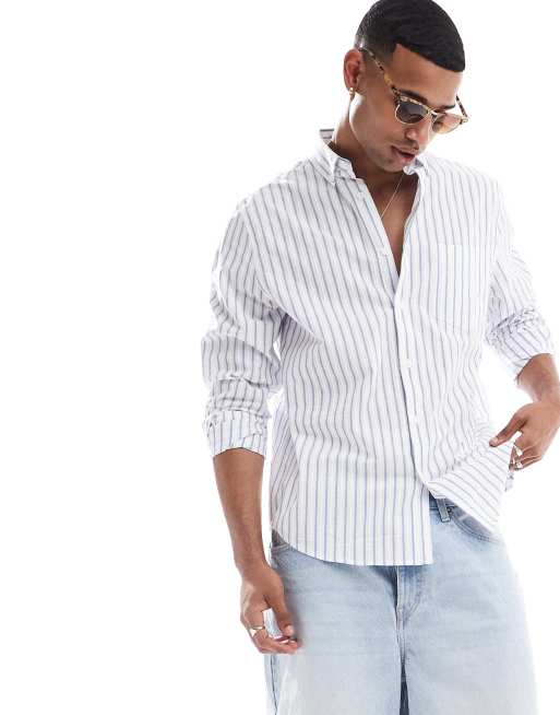 ASOS DESIGN - Chemise décontractée et boutonnée avec col - Bleu rayé