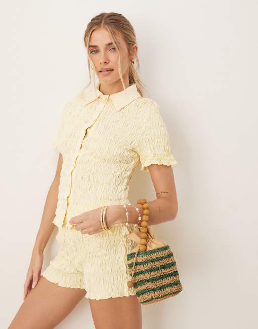 ASOS DESIGN - Chemise d'ensemble ajustée à détail froncé - Crème délavé