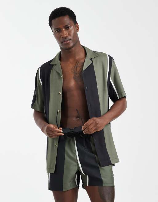 ASOS DESIGN - Chemise d'ensemble classique à rayures et col à revers - Noir et kaki