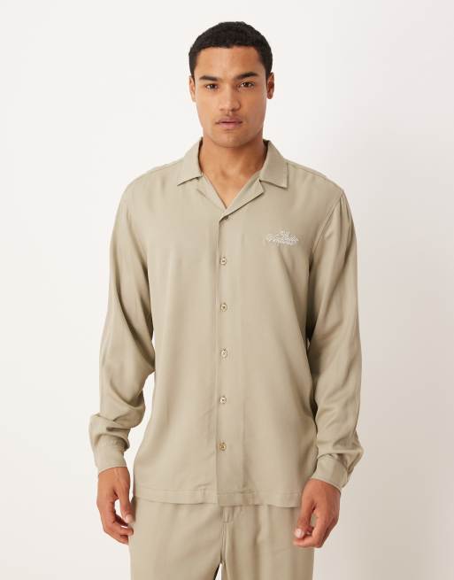 ASOS DESIGN - Chemise d'ensemble classique avec col à revers et broderie sur le devant - Taupe