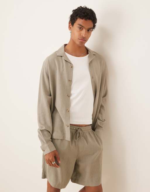 ASOS DESIGN - Chemise d'ensemble coupe carrée en lin mélangé avec col à revers - Vert