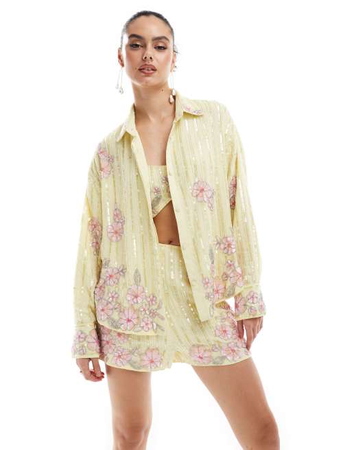 ASOS DESIGN - Chemise d'ensemble ornée de fleurs - Jaune et rose