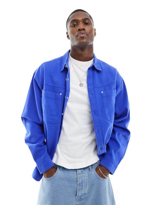 ASOS DESIGN - Chemise en jean oversize coupe carrée - Bleu de cobalt