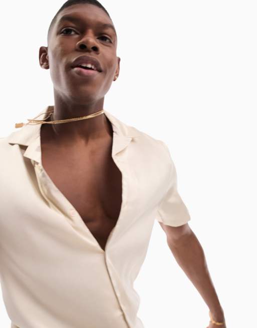ASOS DESIGN - Chemise en satin à col à revers - Taupe