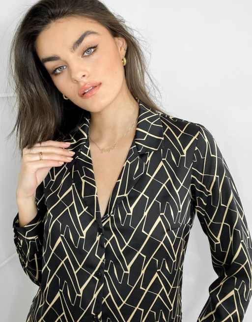 ASOS DESIGN - Chemise en satin à imprimé effet girafe géométrique