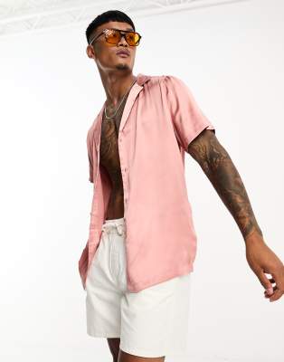 ASOS DESIGN - Chemise en satin avec col à revers large - Rose poudré