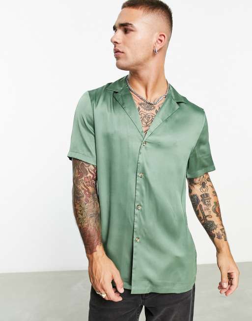 ASOS DESIGN - Chemise en satin coupe à larges revers - Vert sauge
