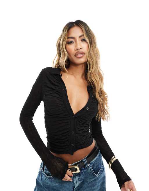 ASOS DESIGN - Chemise froncée en tulle texturé - Noir