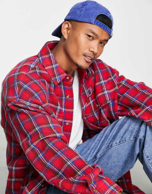 ASOS DESIGN - Chemise gaufrée ultra oversize - Carreaux rouge
