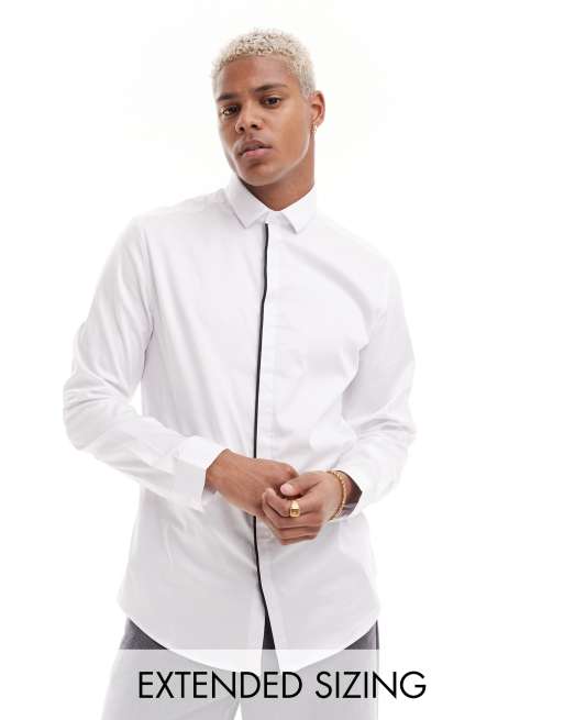 ASOS DESIGN - Chemise habillée ajustée à liseré noir - Blanc