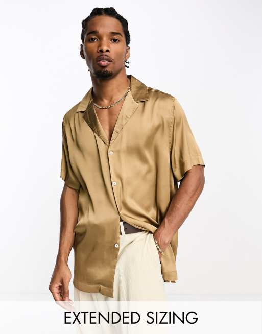 ASOS DESIGN - Chemise manches courtes décontractée en satin avec col à revers profonds - Bronze