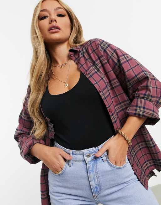 ASOS DESIGN - Chemise manches longues à carreaux coupe boyfriend - Rouge foncé et bleu marine