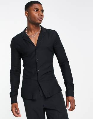 ASOS DESIGN - Chemise moulante en viscose avec col à revers - Noir