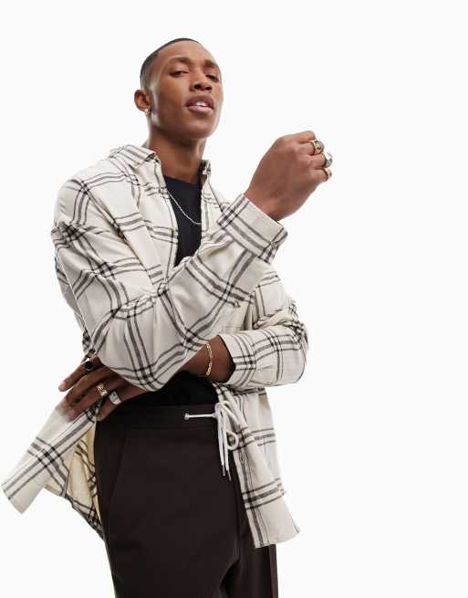 ASOS DESIGN - Chemise oversize à carreaux style années 90 - Beige