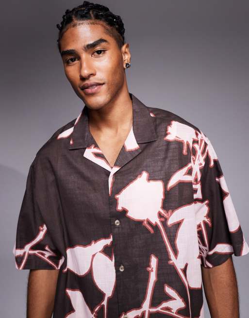 ASOS DESIGN - Chemise oversize à imprimé fleurs - Marron