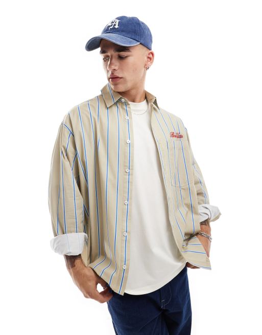 ASOS DESIGN - Chemise oversize à rayures avec broderie rouge sur la poitrine