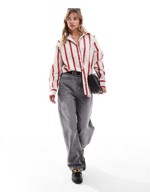 ASOS DESIGN - Chemise oversize à rayures - Crème et rouge