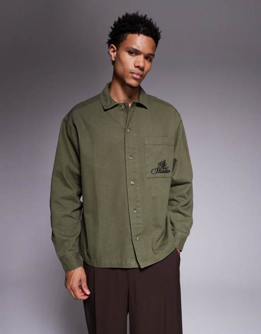 ASOS DESIGN - Chemise oversize avec broderies fleuries au dos - Kaki