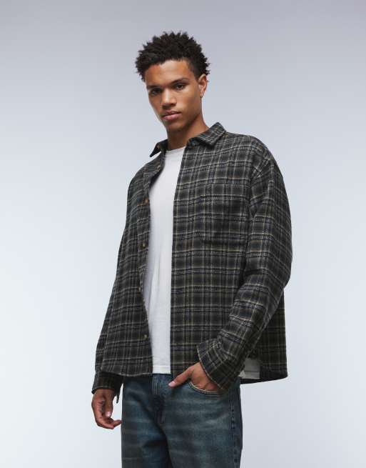 ASOS DESIGN - Chemise oversize brossée à carreaux - Noir