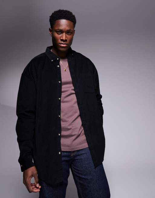 ASOS DESIGN - Chemise oversize côtelée style années 90 - Noir