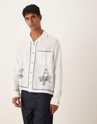 ASOS DESIGN - Chemise oversize coupe carrée avec broderie - Blanc