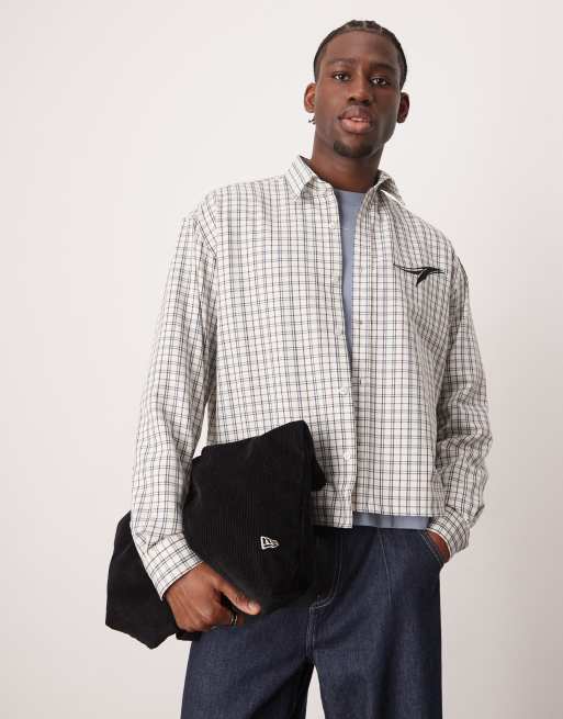 ASOS DESIGN - Chemise oversize coupe carrée avec carreaux et broderie poitrine - Noir/gris