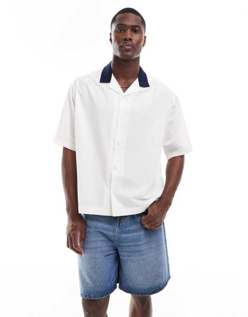 ASOS DESIGN - Chemise oversize coupe carrée côtelée avec col à revers - Blanc