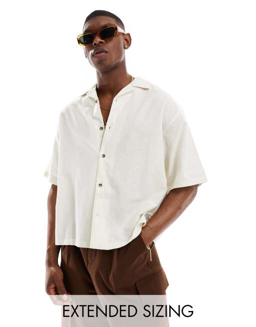 ASOS DESIGN - Chemise oversize coupe carrée en lin mélangé avec col à revers - Écru